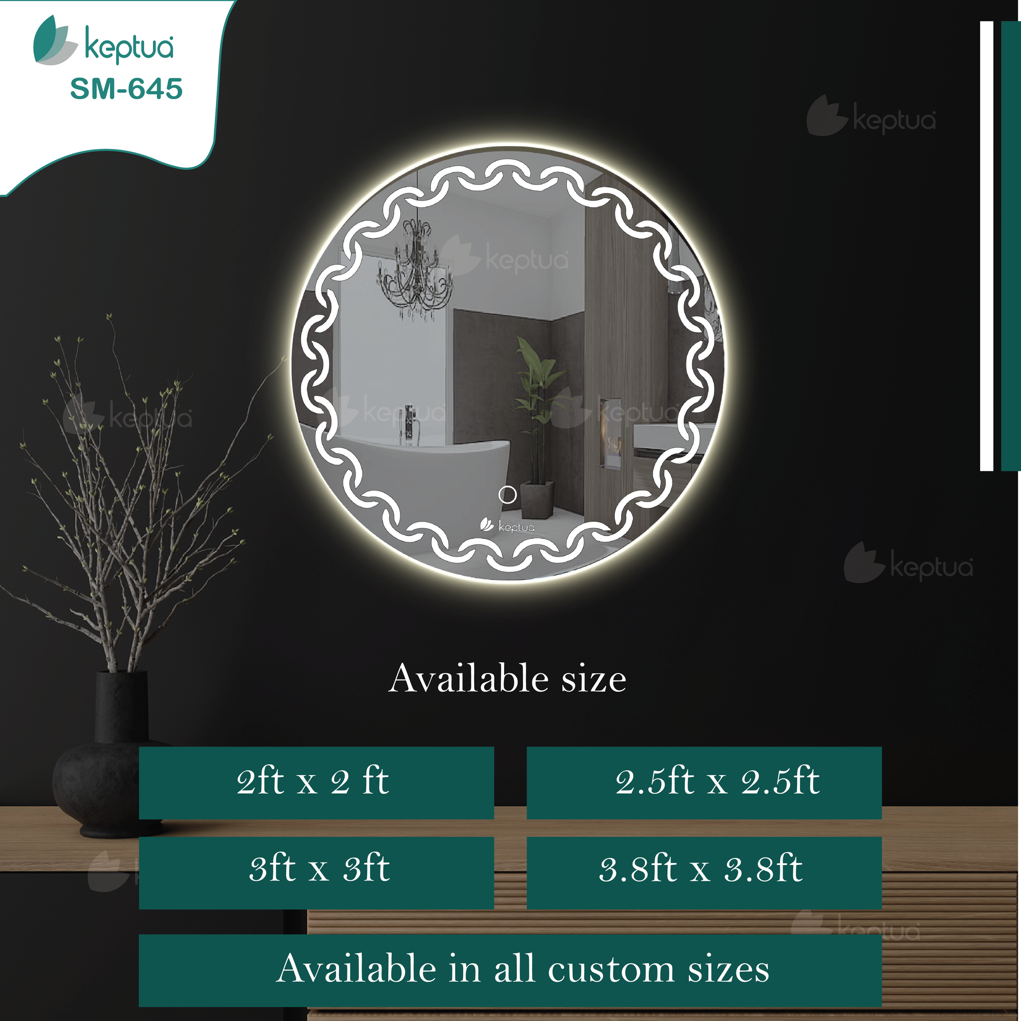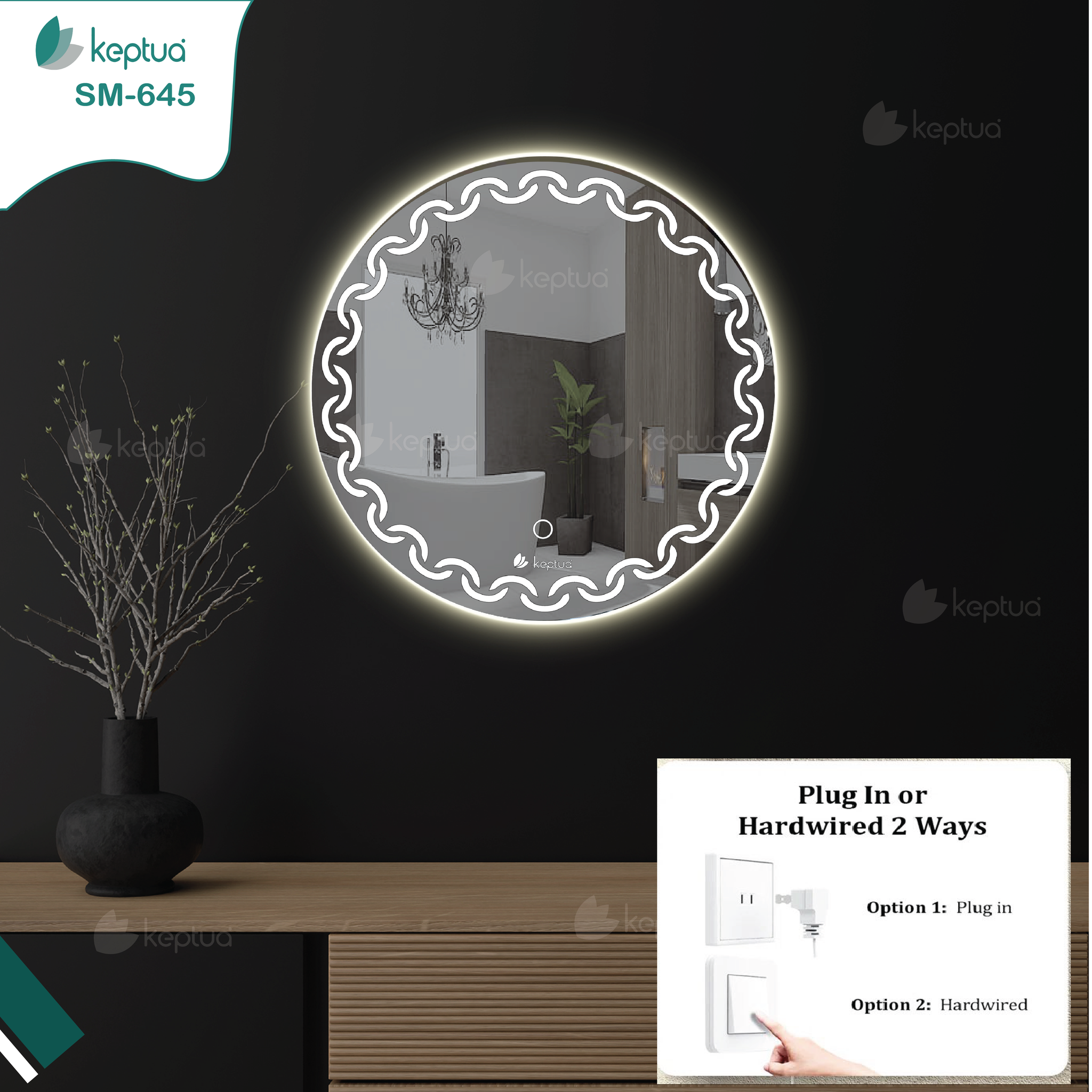 Keptua's Smart Mirror SM-645 is an eye-catching addition to any home. Whether your interior style is modern, traditional, or avant-garde, the sophisticated design and advanced technology of the SM-645 provide a perfect accent to your room. With its sleek lines and adaptive brightness, the SM-645 is the ideal choice for bringing your signature home style to life and best fir for both residential and commercial ambiences.